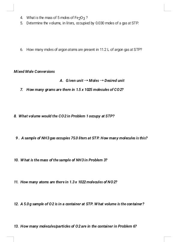 Converting from moles to grams, liters, and molecules.